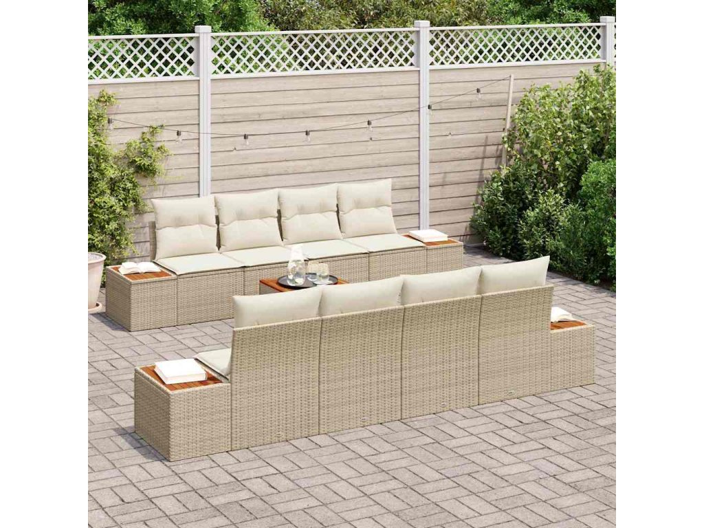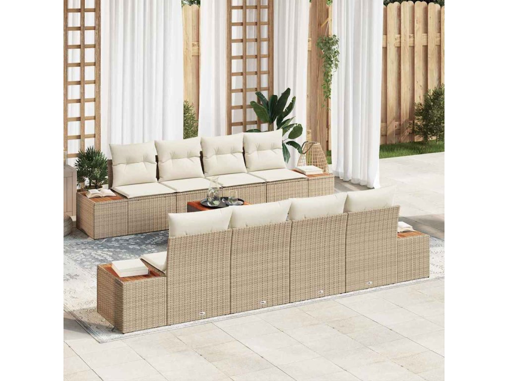Súprava záhradných pohoviek s vankúšom 9 pcs Béžová Poly ratan 3348052