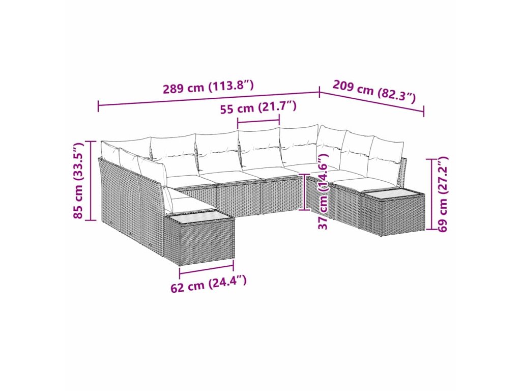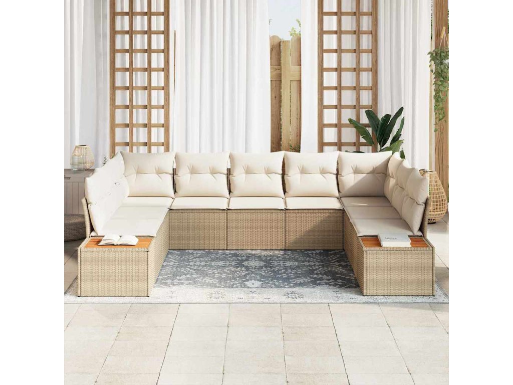 Súprava záhradných pohoviek s vankúšom 9 pcs Béžová Poly ratan 3348167