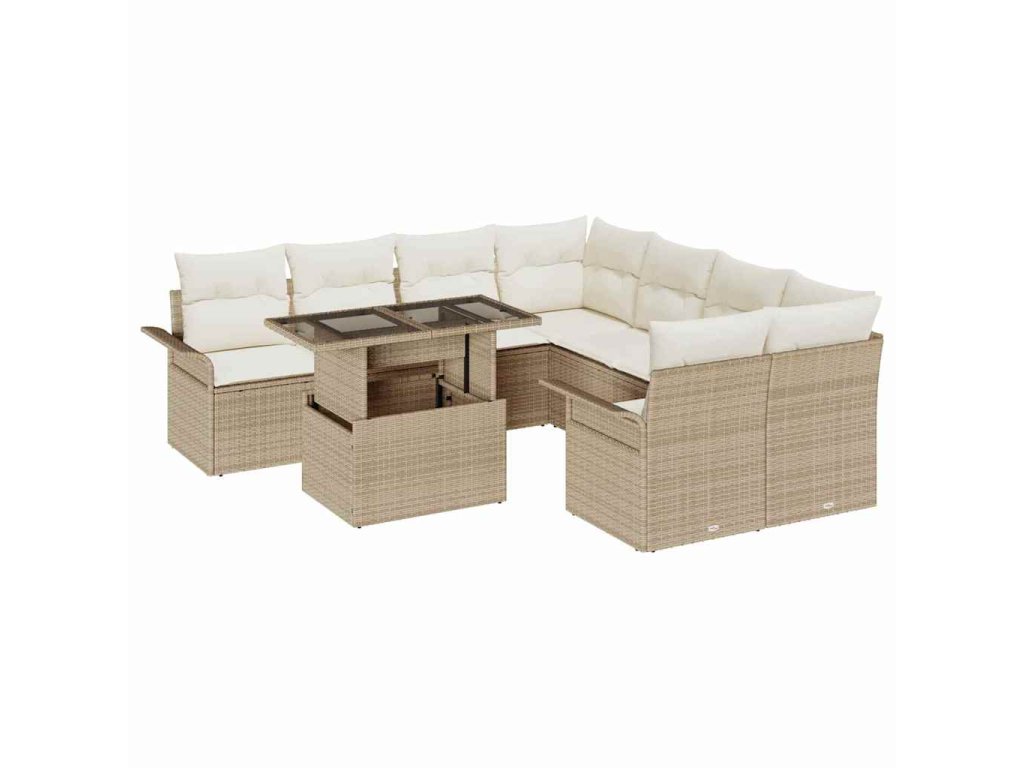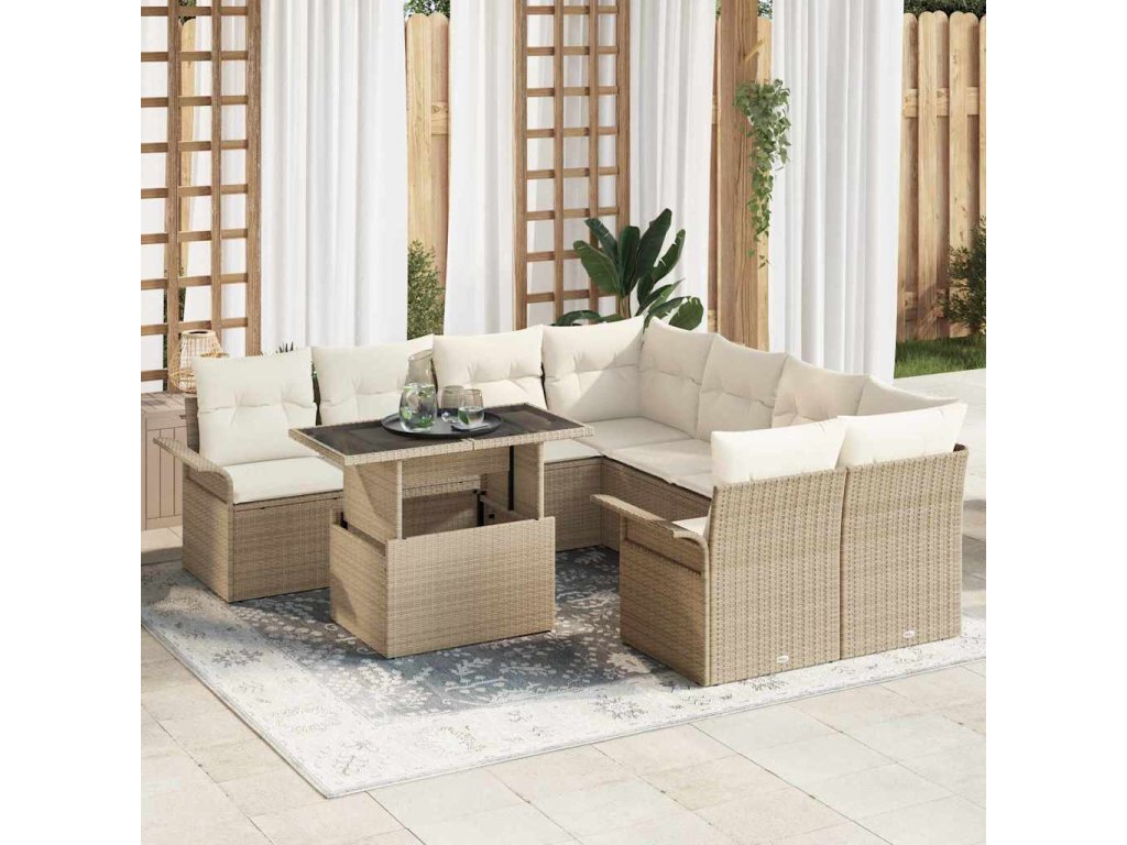 Súprava záhradných pohoviek s vankúšom 9 pcs Béžová Poly ratan 3348257