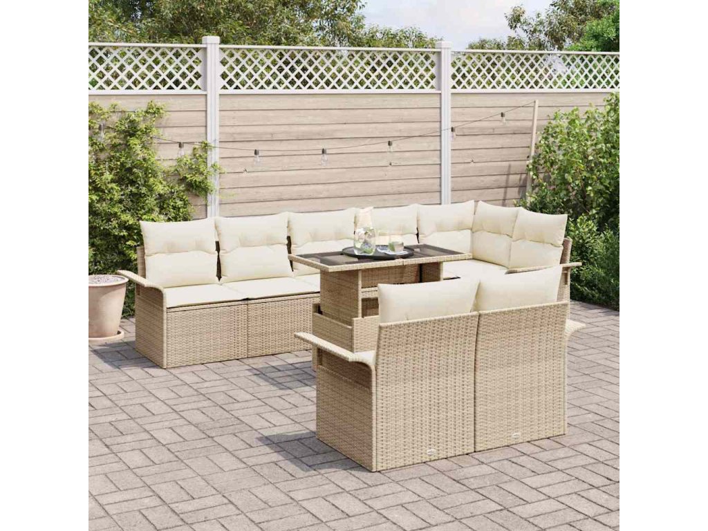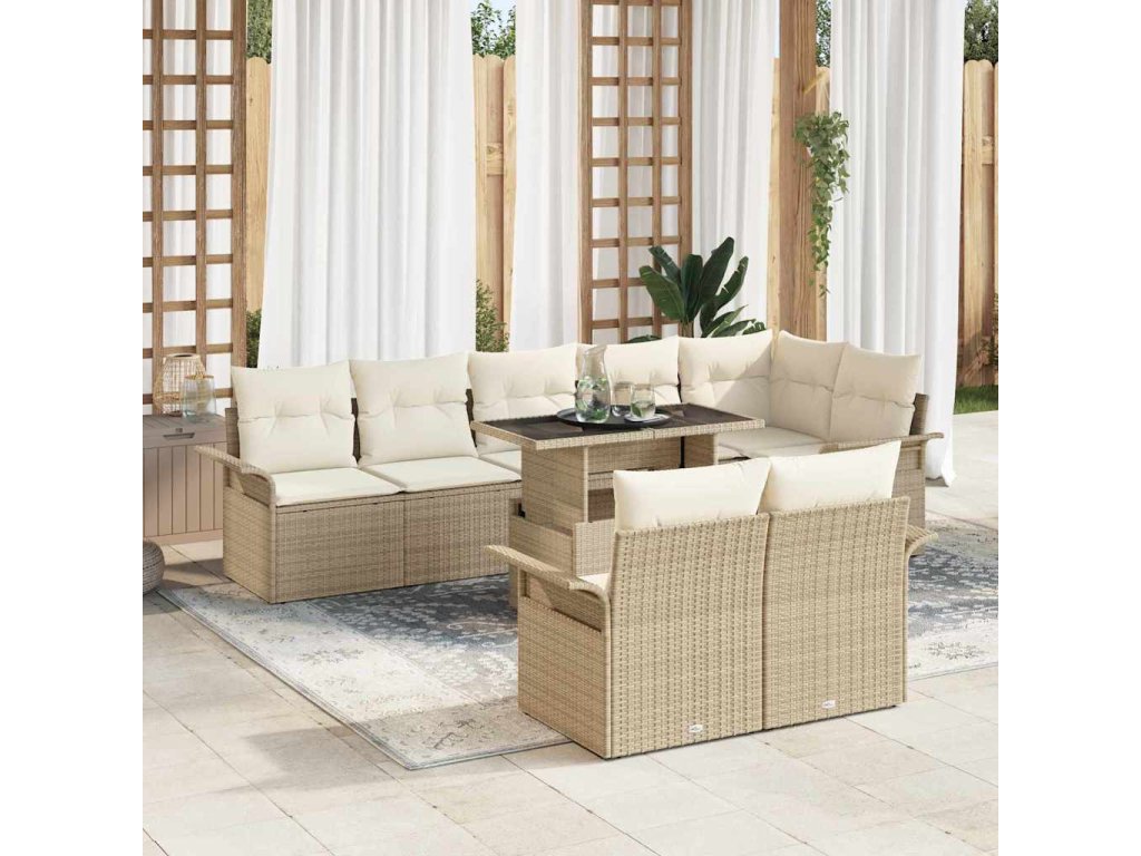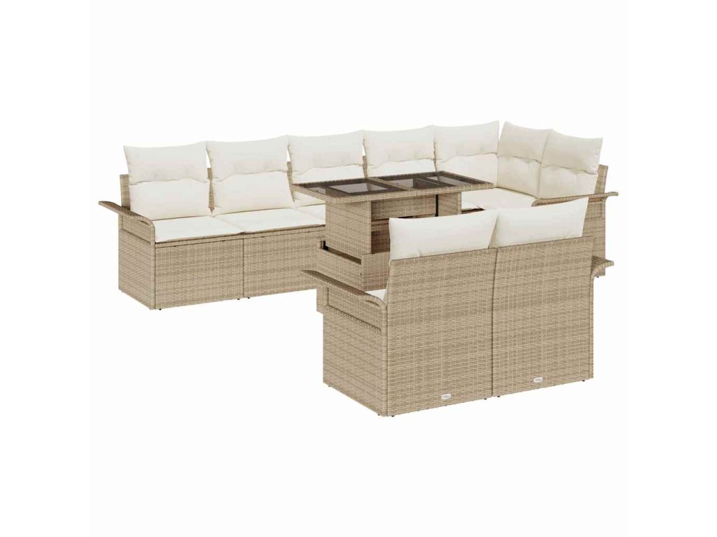 Súprava záhradných pohoviek s vankúšom 9 pcs Béžová Poly ratan 3348307