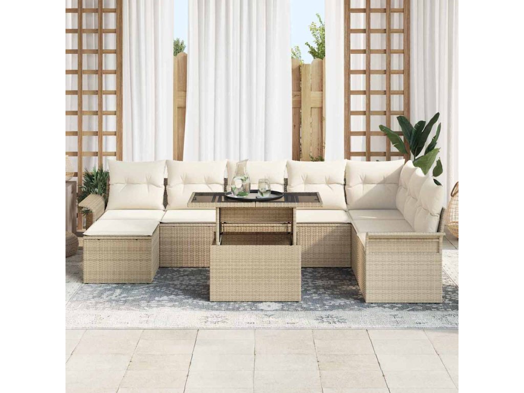 Súprava záhradných pohoviek s vankúšom 9 pcs Béžová Poly ratan 3348337