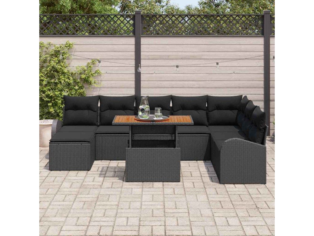 Súprava záhradných pohoviek s vankúšom 9 pcs Čierna 3349624