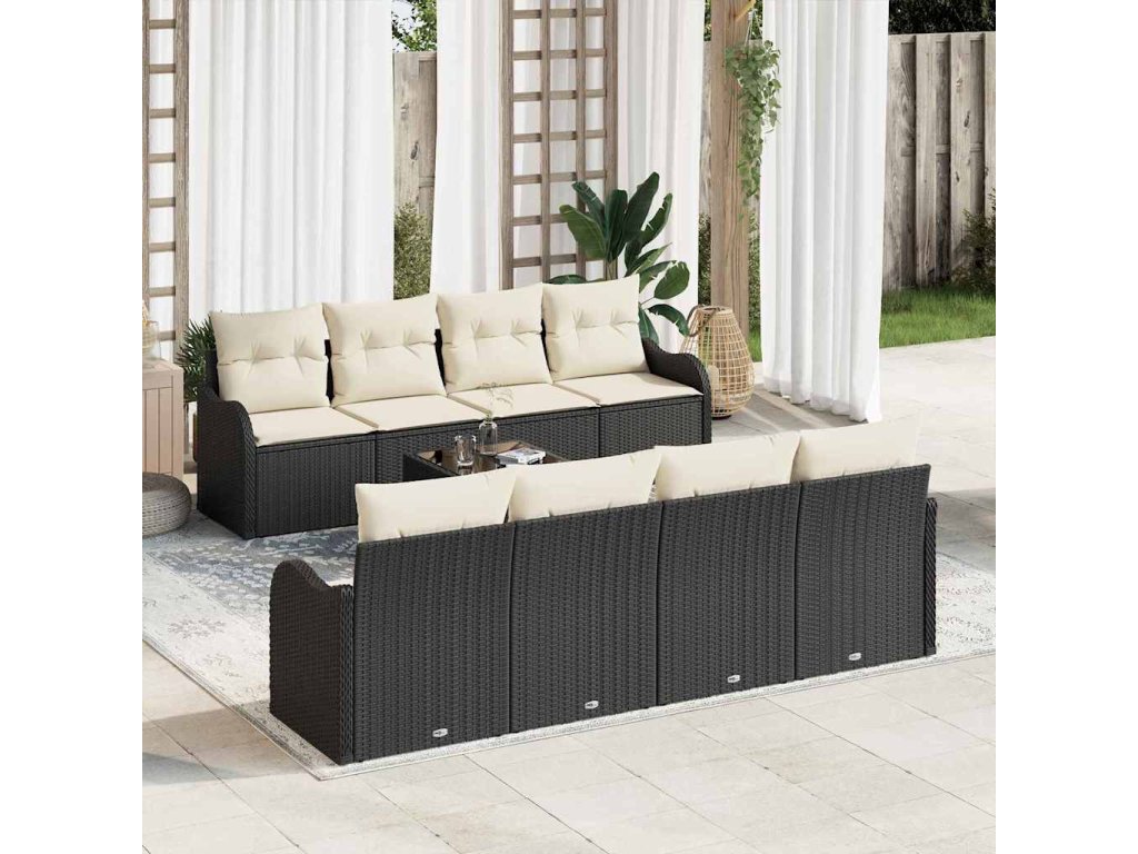 Súprava záhradných pohoviek s vankúšom 9 pcs Čierna a krémová 3354296
