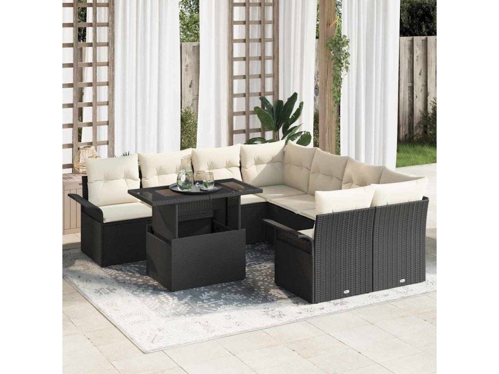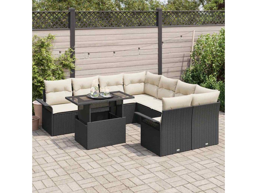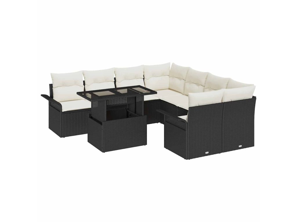 Súprava záhradných pohoviek s vankúšom 9 pcs Čierna Poly ratan 3348253