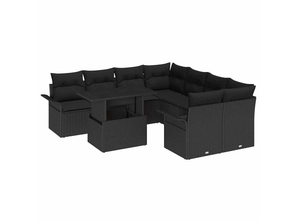 Súprava záhradných pohoviek s vankúšom 9 pcs Čierna Poly ratan 3348259