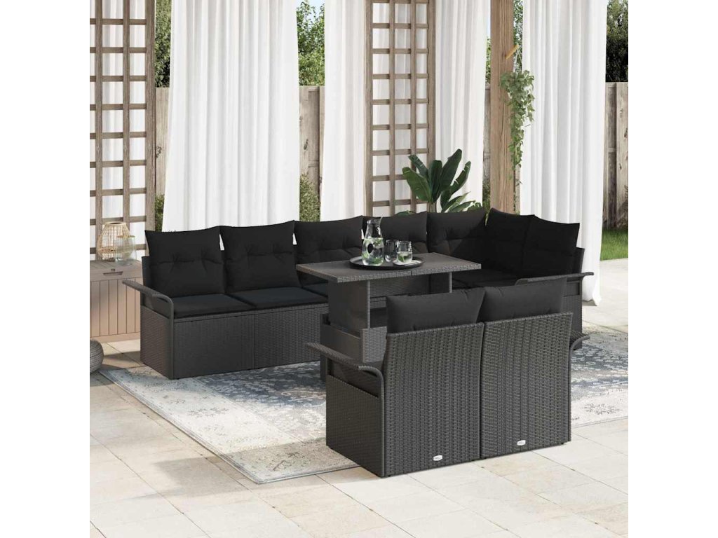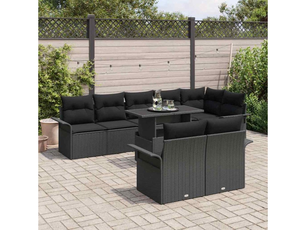 Súprava záhradných pohoviek s vankúšom 9 pcs Čierna Poly ratan 3348309