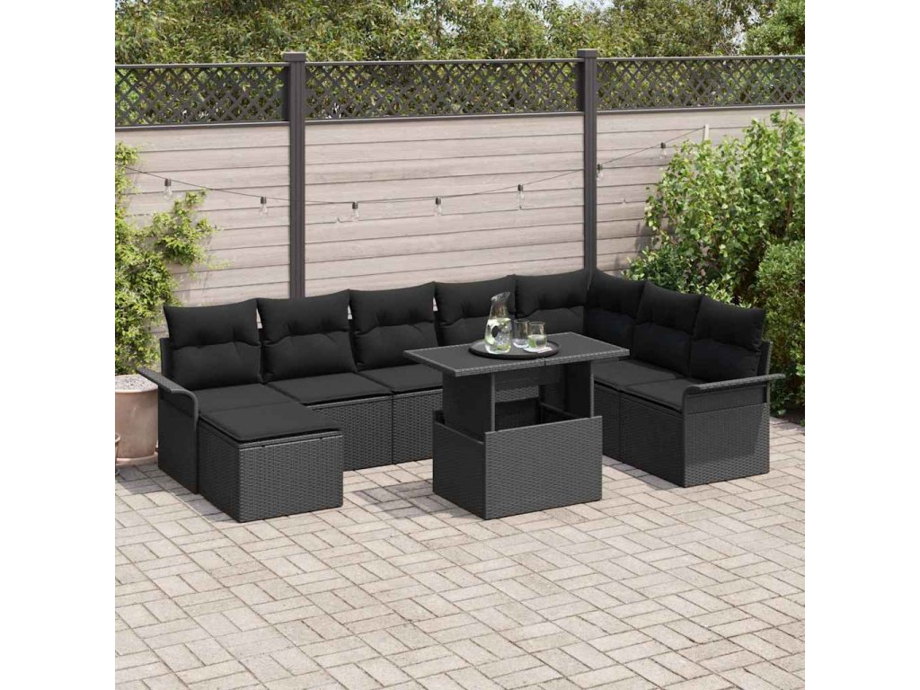 Súprava záhradných pohoviek s vankúšom 9 pcs Čierna Poly ratan 3348339
