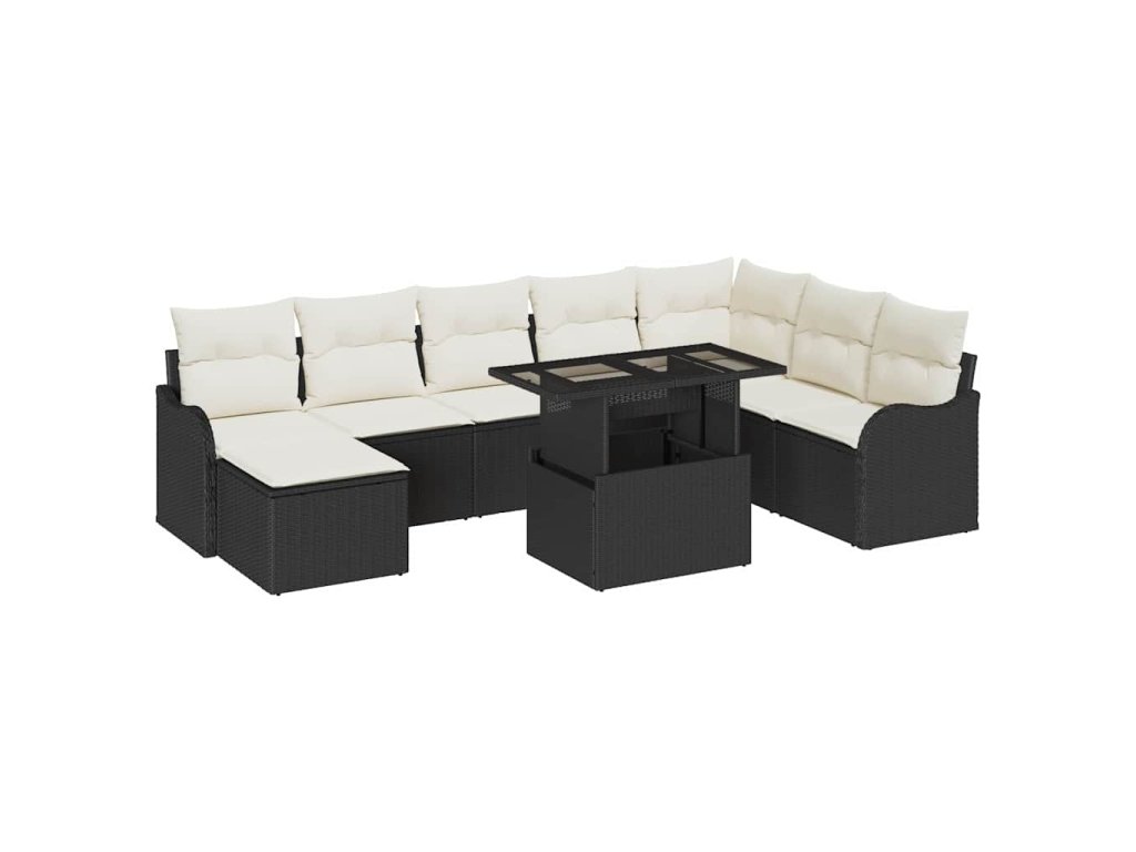 Súprava záhradných pohoviek s vankúšom 9 pcs Čierna Poly ratan 3348513
