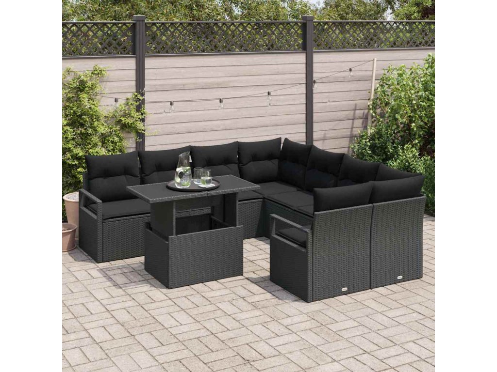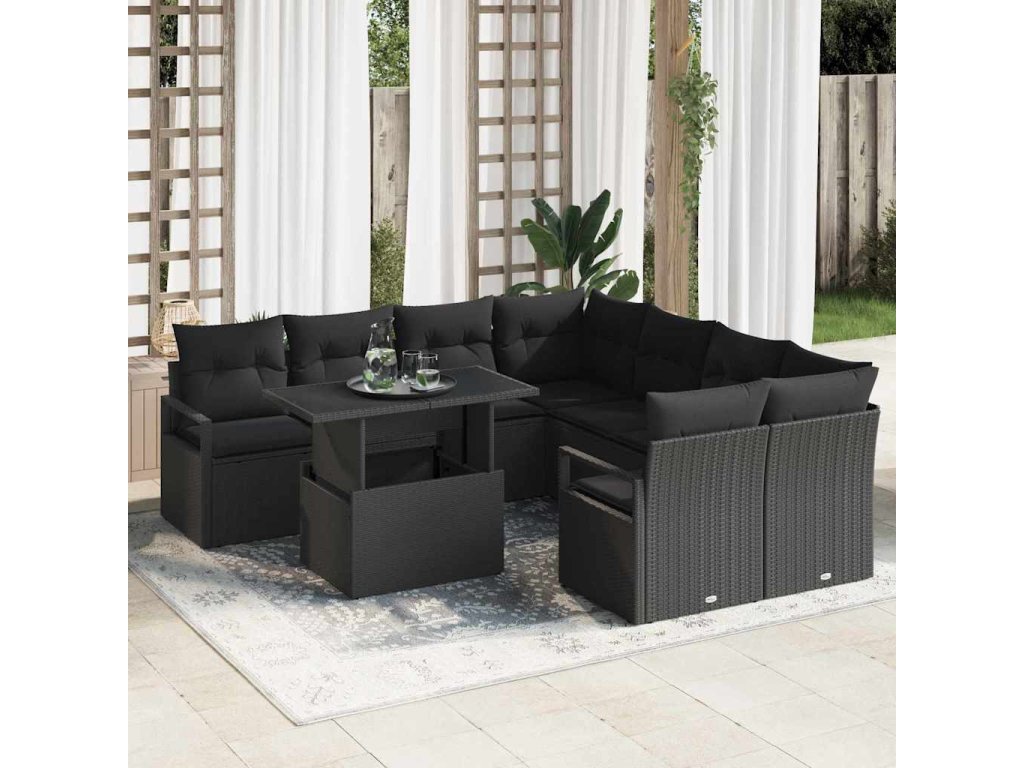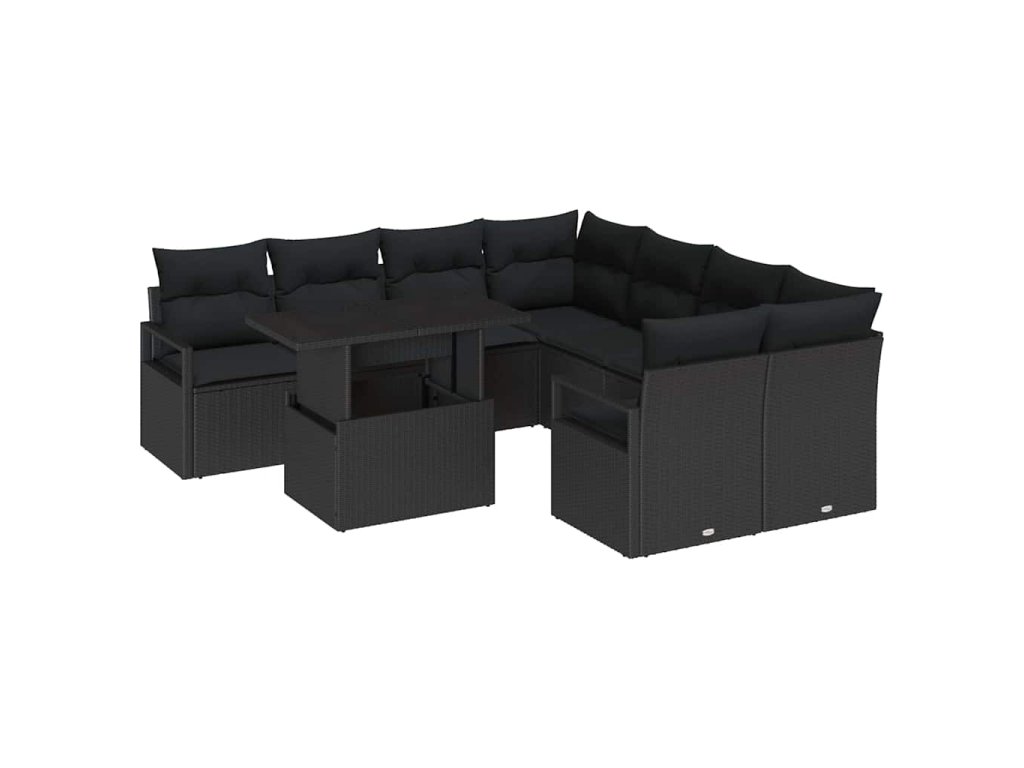 Súprava záhradných pohoviek s vankúšom 9 pcs Čierna polyratan 3348799