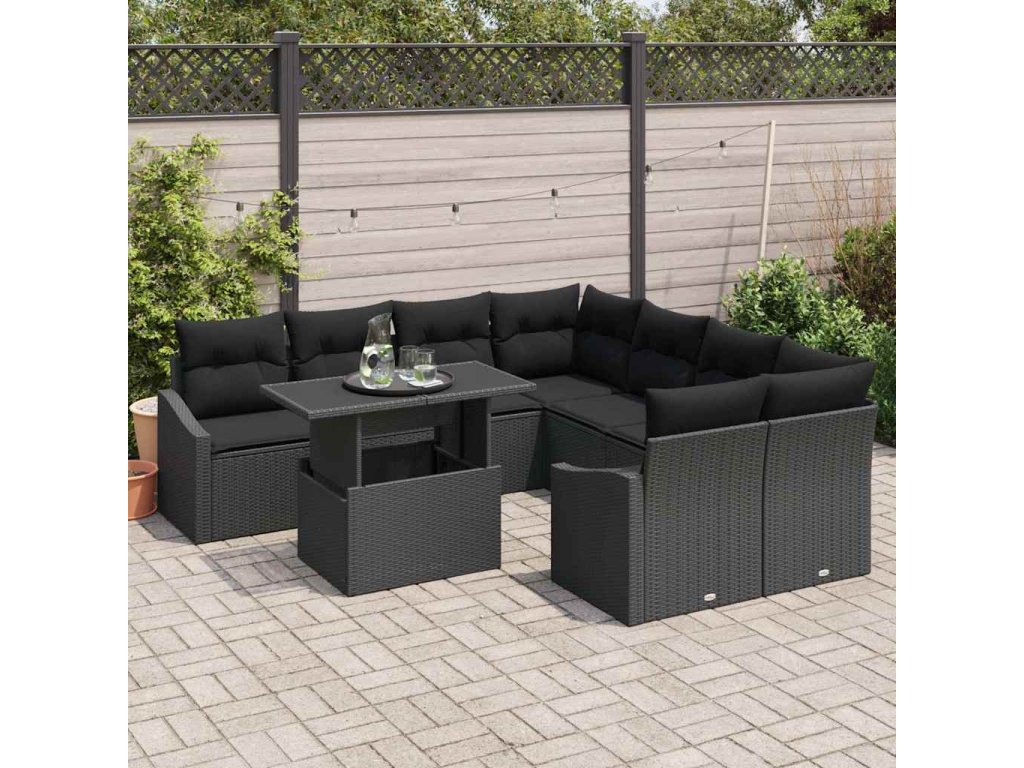Súprava záhradných pohoviek s vankúšom 9 pcs Čierna polyratan 3348979