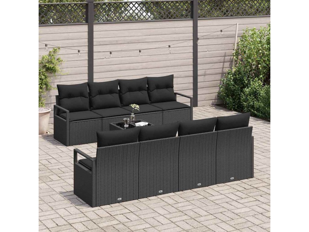 Súprava záhradných pohoviek s vankúšom 9 pcs Čierna polyratan 3354982