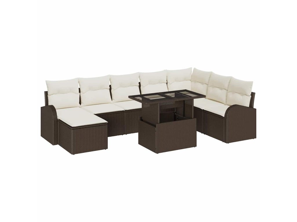 Súprava záhradných pohoviek s vankúšom 9 pcs Hnedá a krémová 3348694