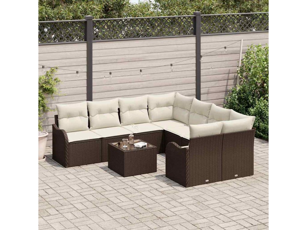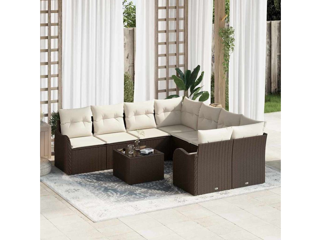 Súprava záhradných pohoviek s vankúšom 9 pcs Hnedá a smotanová 3354307