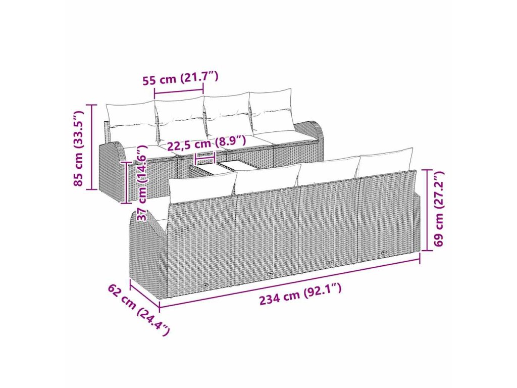 Tento modulárny záhradný sedací súprava je ideálny mix štýlu, funkčnosti a pohodlia, určený pre tých, ktorí majú radi moderný dizajn. Či už sa opaľujete alebo organizujete párty v záhrade, elegantné línie a rôzne možnosti usporiadania súpravy ju robia skvelým centrom pozornosti vonku.