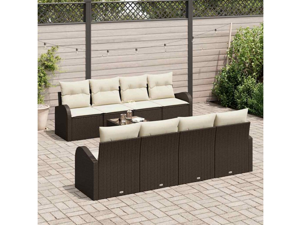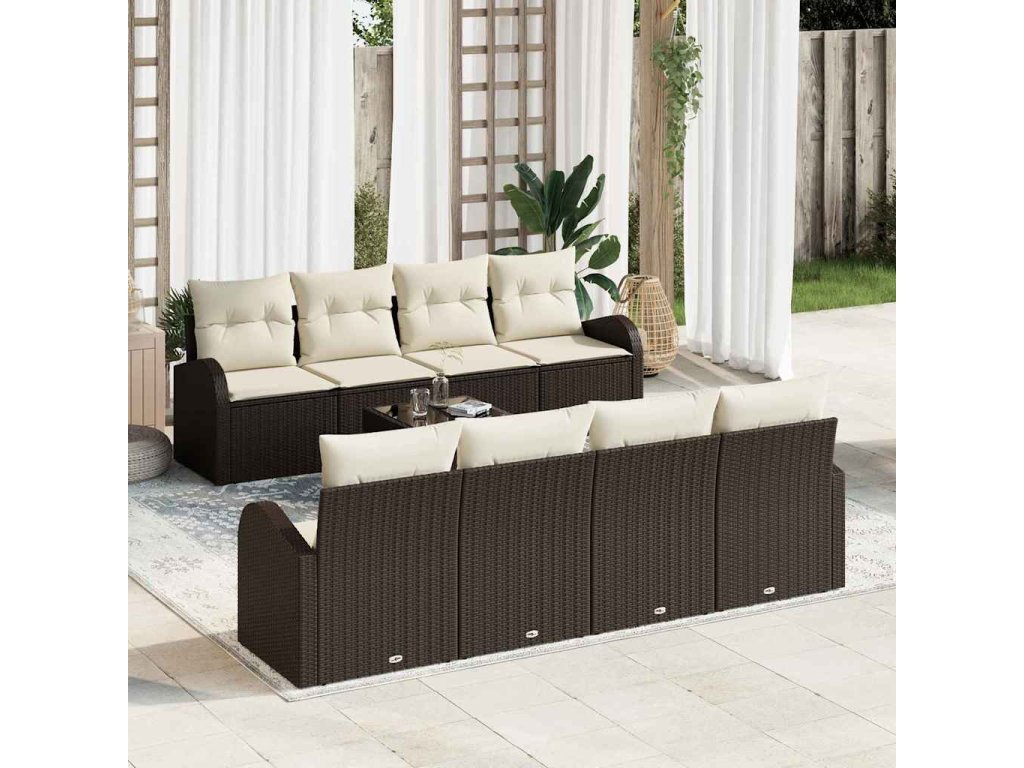 Súprava záhradných pohoviek s vankúšom 9 pcs Hnedá a smotanová 3354637