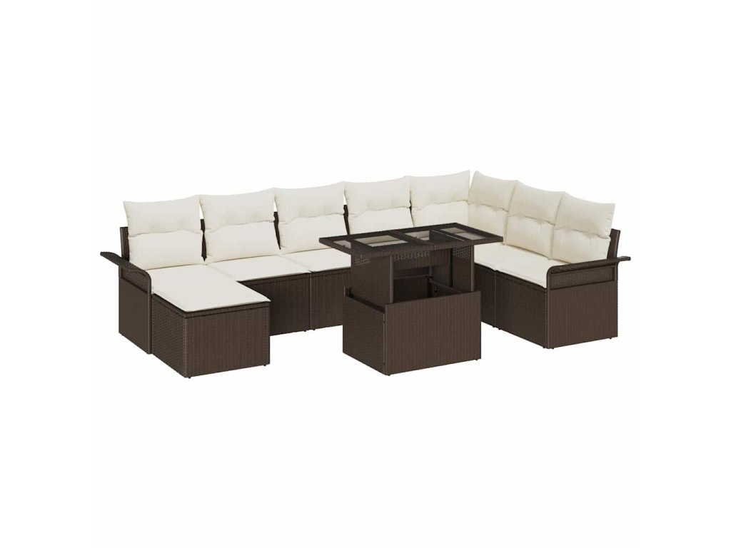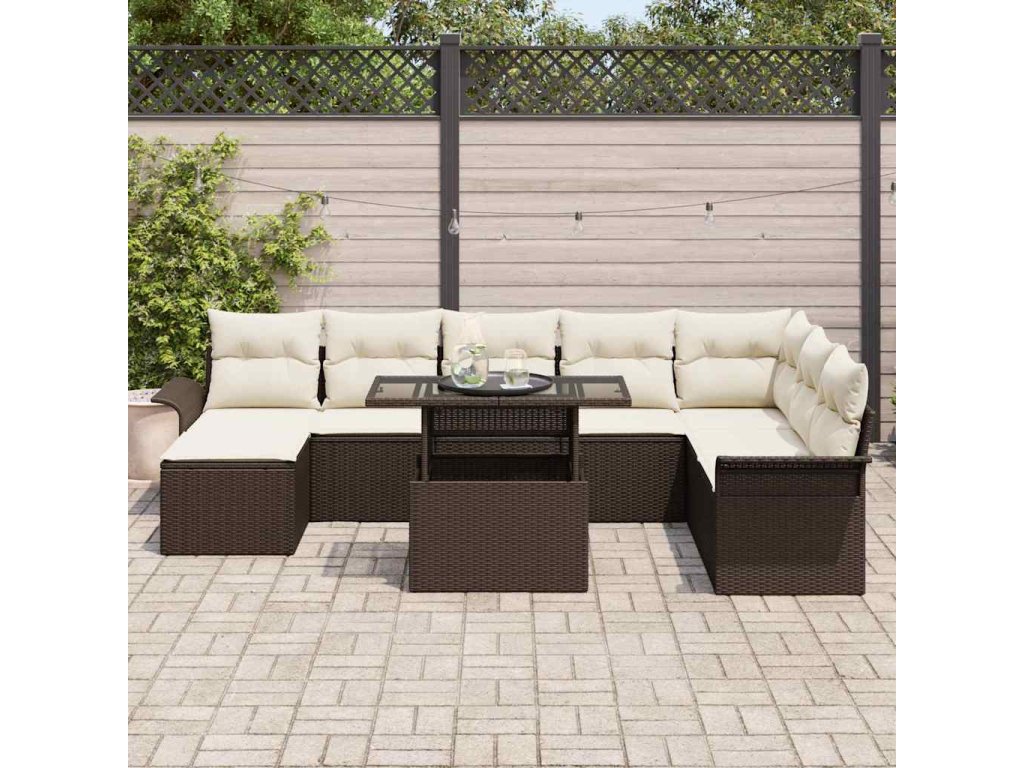 Súprava záhradných pohoviek s vankúšom 9 pcs Hnedá Poly ratan 3348334