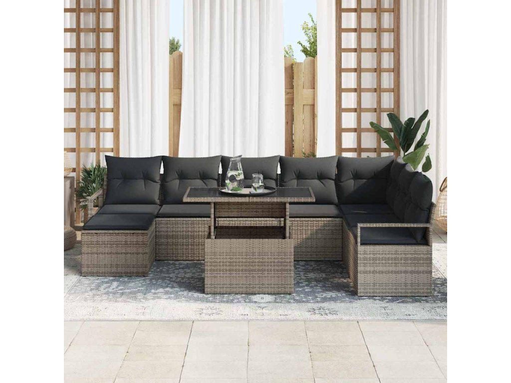 Súprava záhradných pohoviek s vankúšom 9 pcs Sivá 3348875