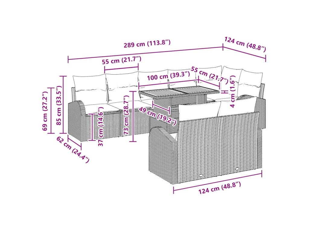 - Odporúčané použitia: Tento pohovkový set zlepší váš vonkajší život a je ideálny do záhrad a na terasy. Prispôsobiteľný, takže či už relaxujete s blízkymi, alebo hostíte štýlové stretnutia, tento set z vašich vonkajších priestorov spraví hit.