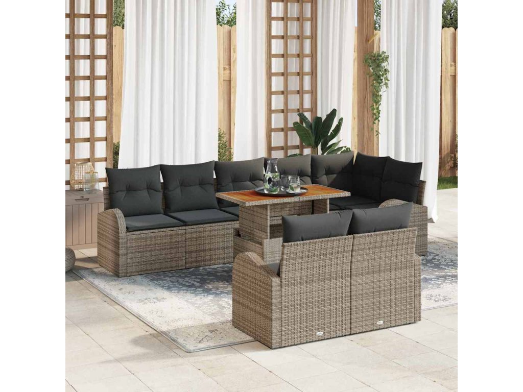 Súprava záhradných pohoviek s vankúšom 9 pcs Sivá 3349600
