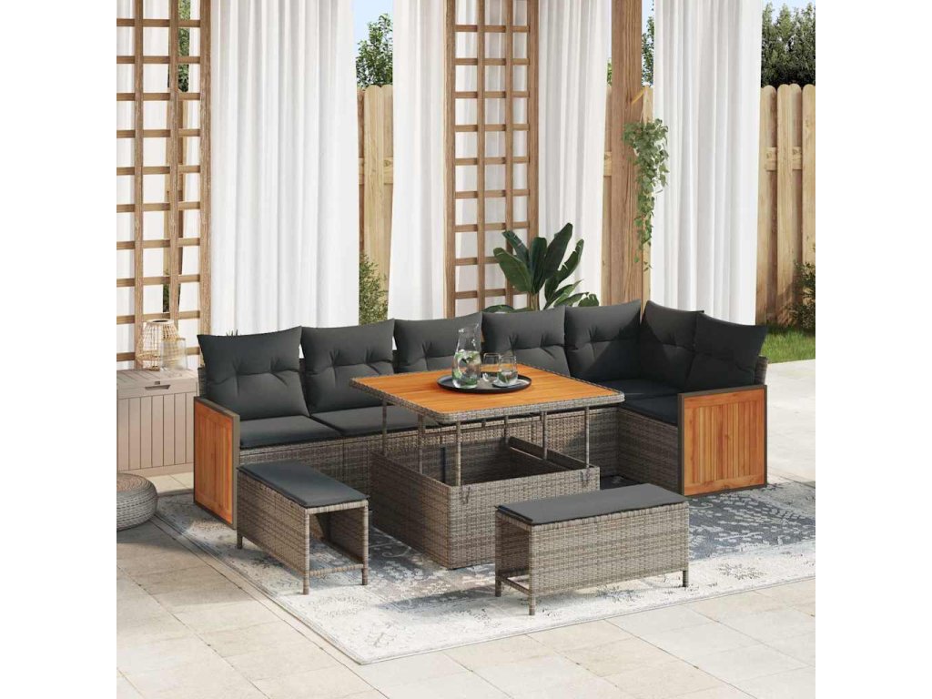 Súprava záhradných pohoviek s vankúšom 9 pcs Sivá 3363318