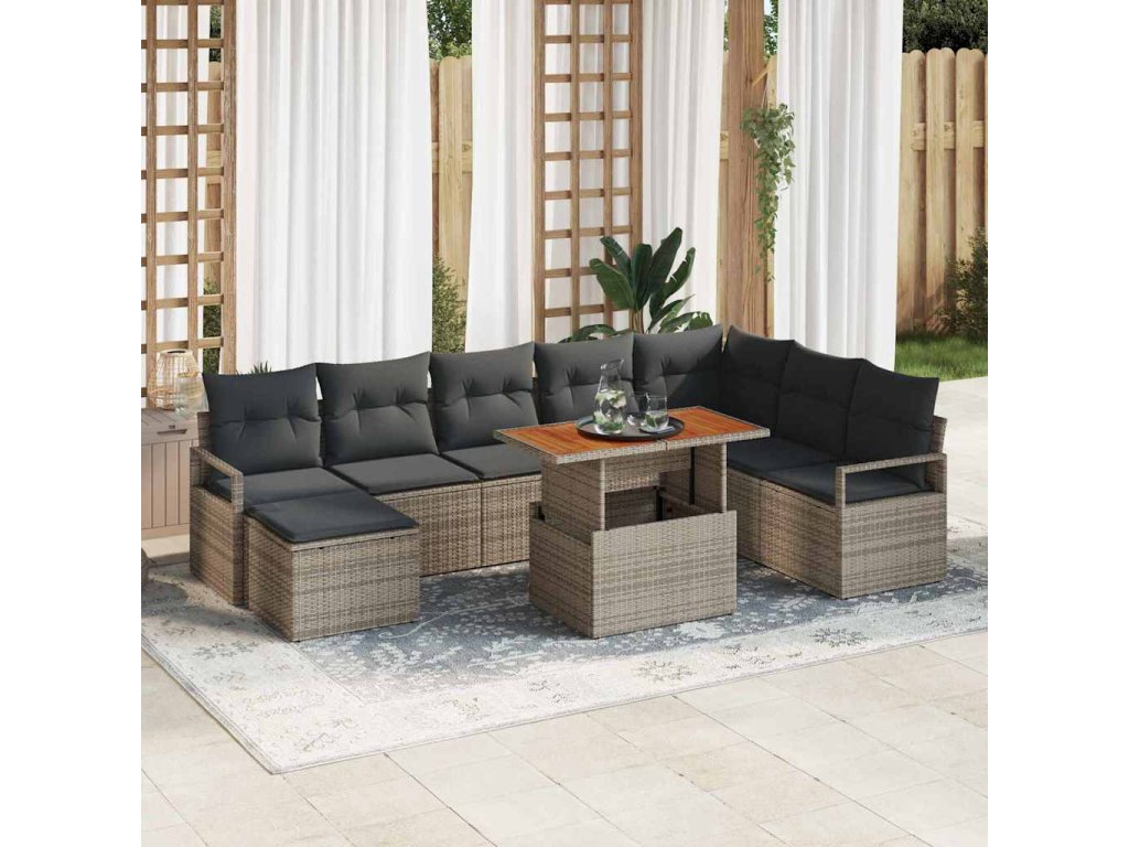 Súprava záhradných pohoviek s vankúšom 9 pcs Sivá a hnedá 3349747