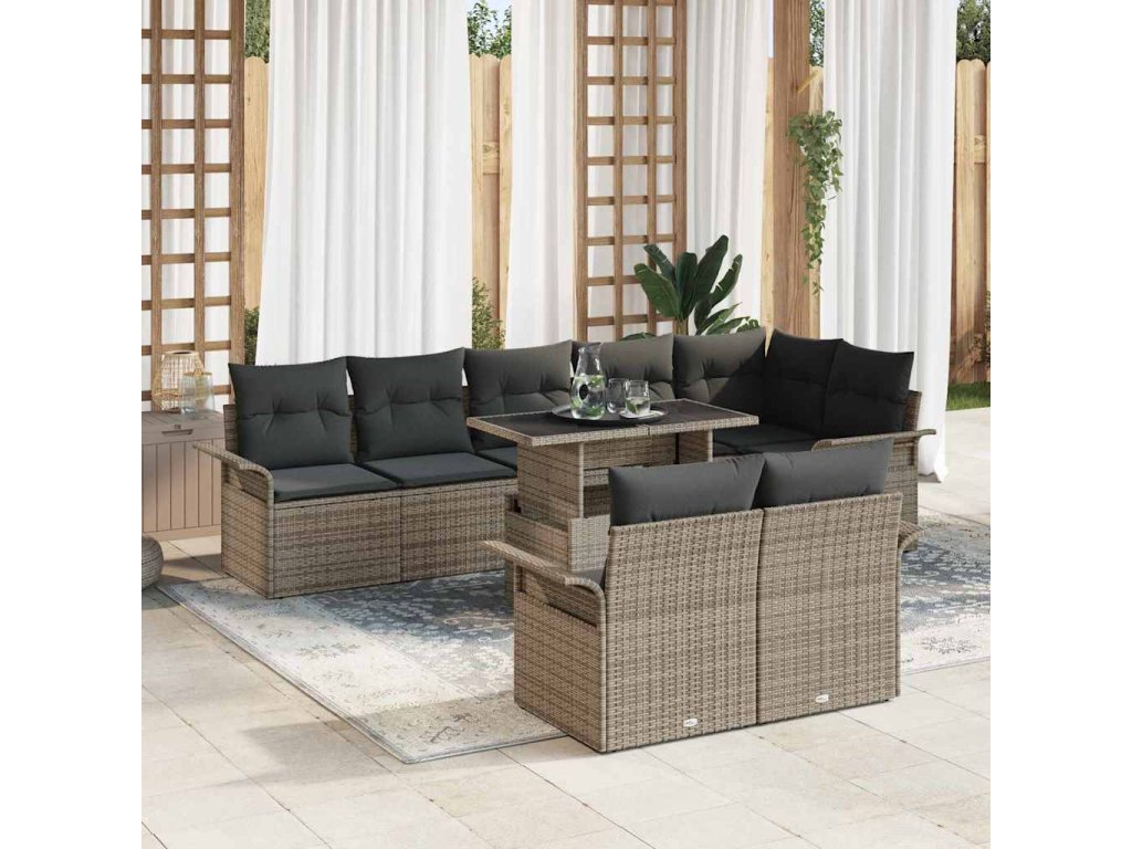Súprava záhradných pohoviek s vankúšom 9 pcs Sivá Poly ratan 3348305
