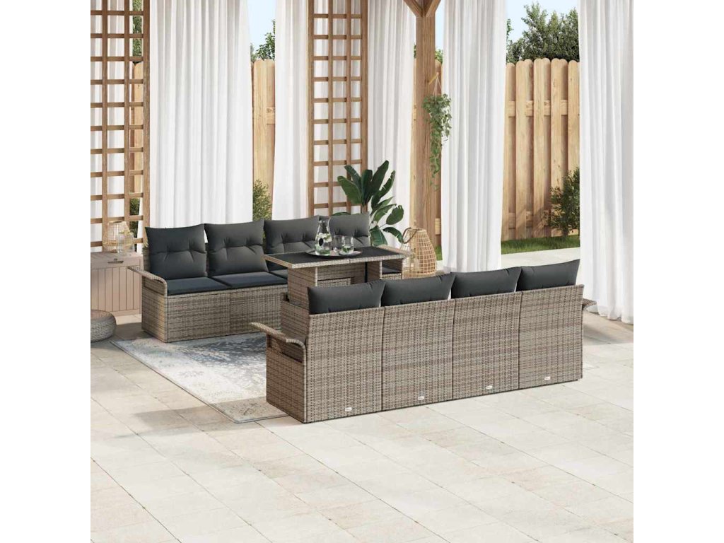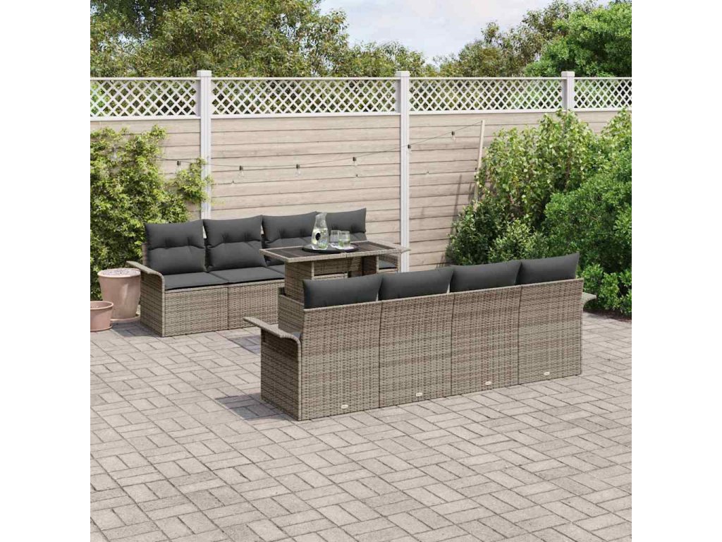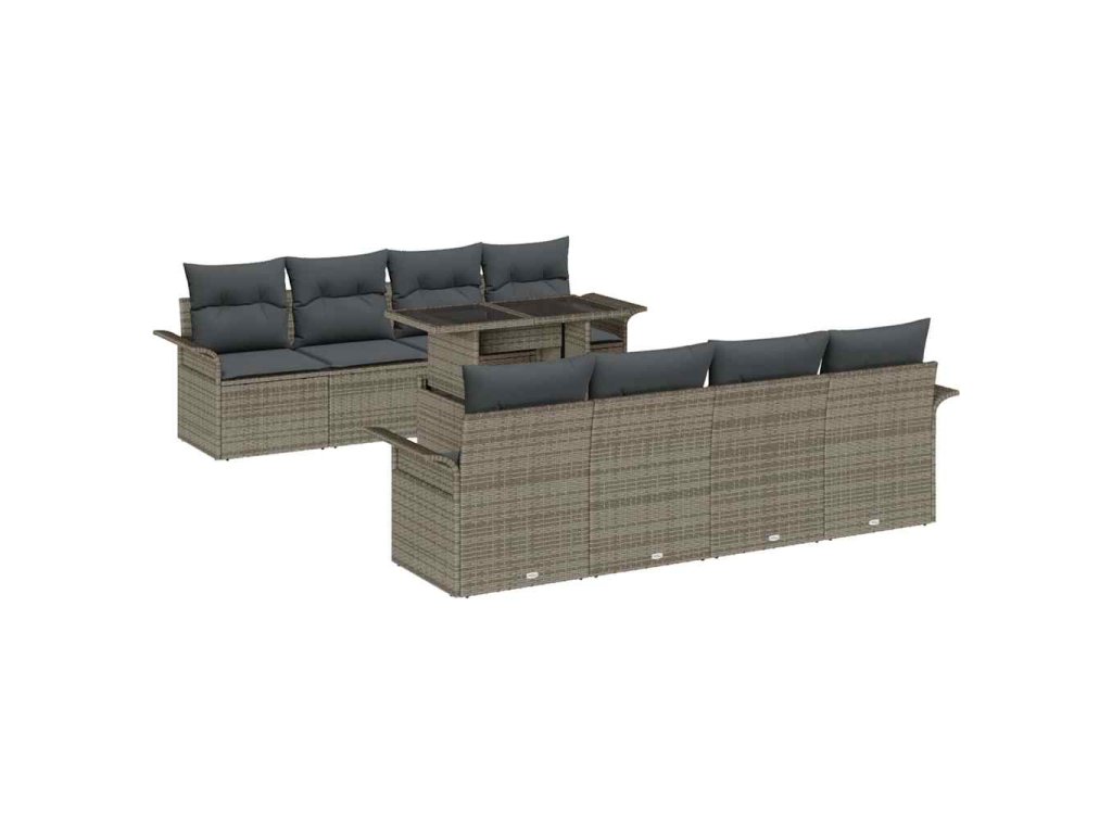 Súprava záhradných pohoviek s vankúšom 9 pcs Sivá polyratan 3348245
