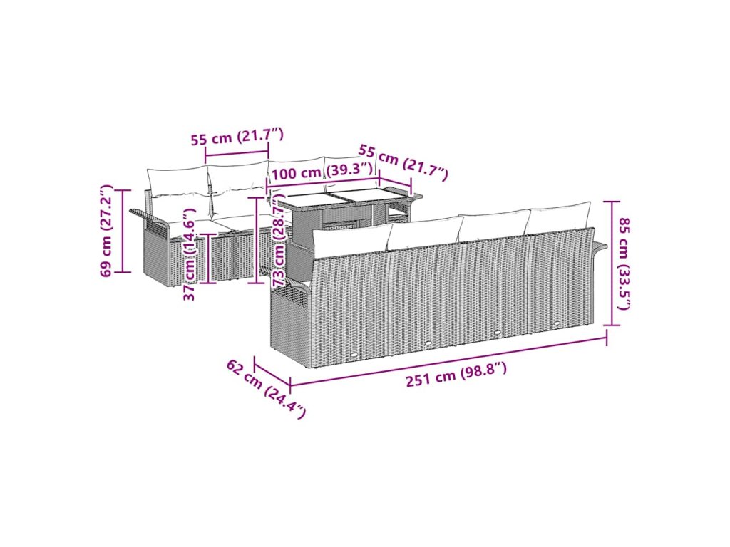 Táto modulárna záhradná súprava pohoviek je skvelým vonkajším riešením, ktoré vylepšuje záhrady a terasy. Jej moderný dizajn s elegantným a funkčným štýlom zahŕňa osem pohodlných komponentov a výškovo nastaviteľný stôl, ideálny pre kávu či večeru. Ponúka príjemné sedenie či už pre rodinu alebo priateľov.