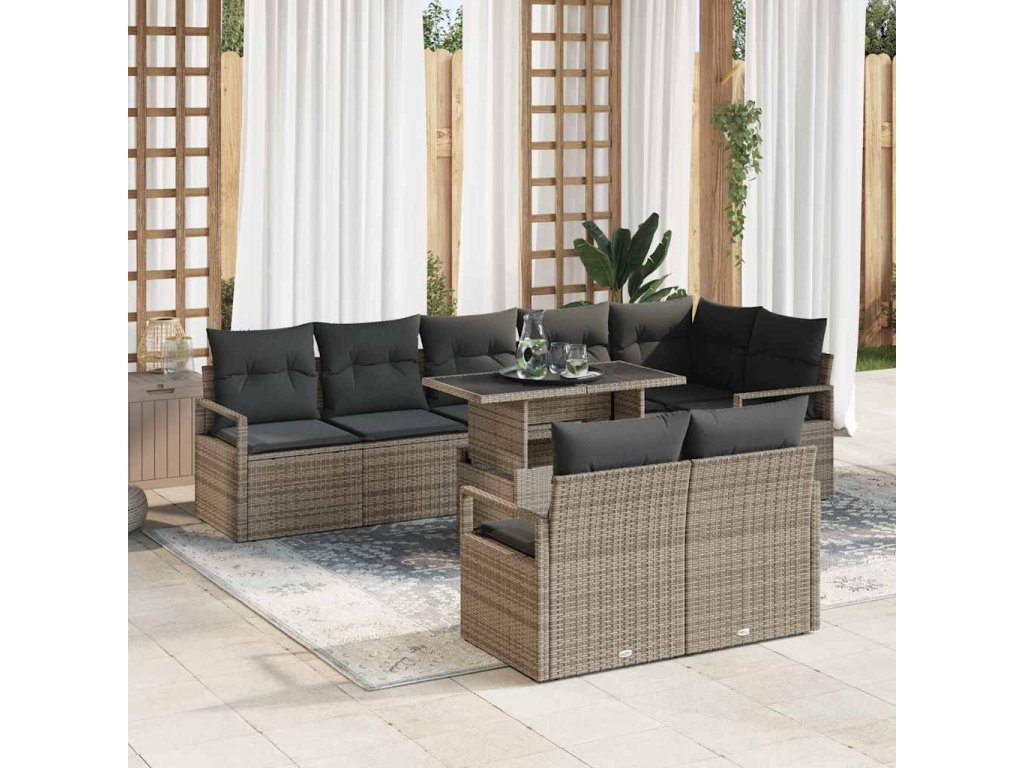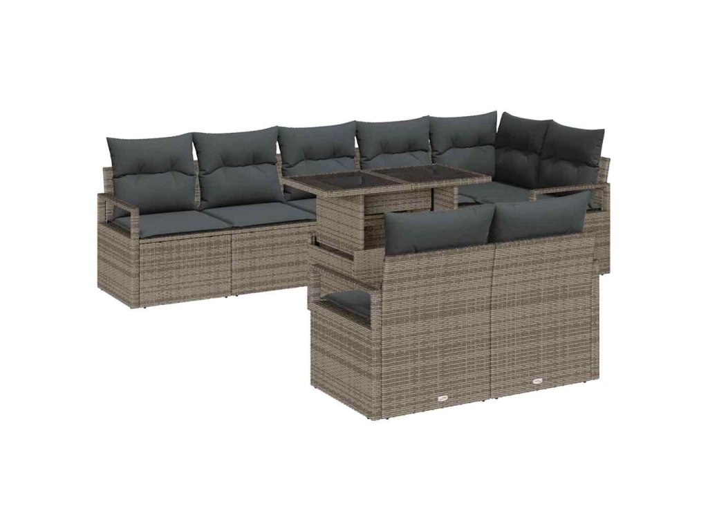 Súprava záhradných pohoviek s vankúšom 9 pcs Sivá polyratan 3348845