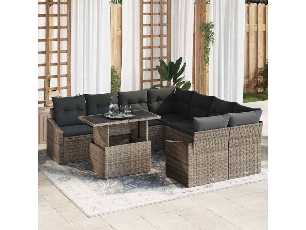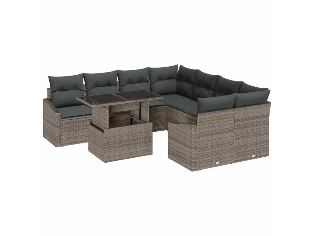 Súprava záhradných pohoviek s vankúšom 9 pcs Sivá polyratan 3348975