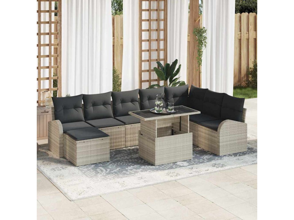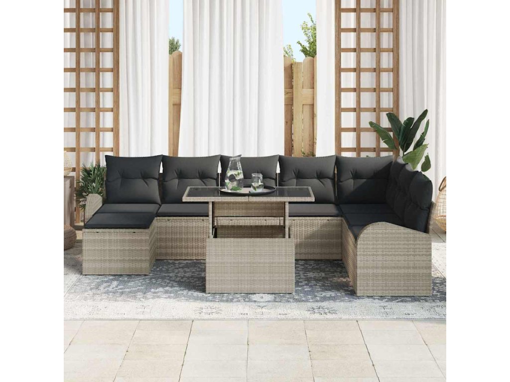 Súprava záhradných pohoviek s vankúšom 9 pcs Svetlosivá 3348698
