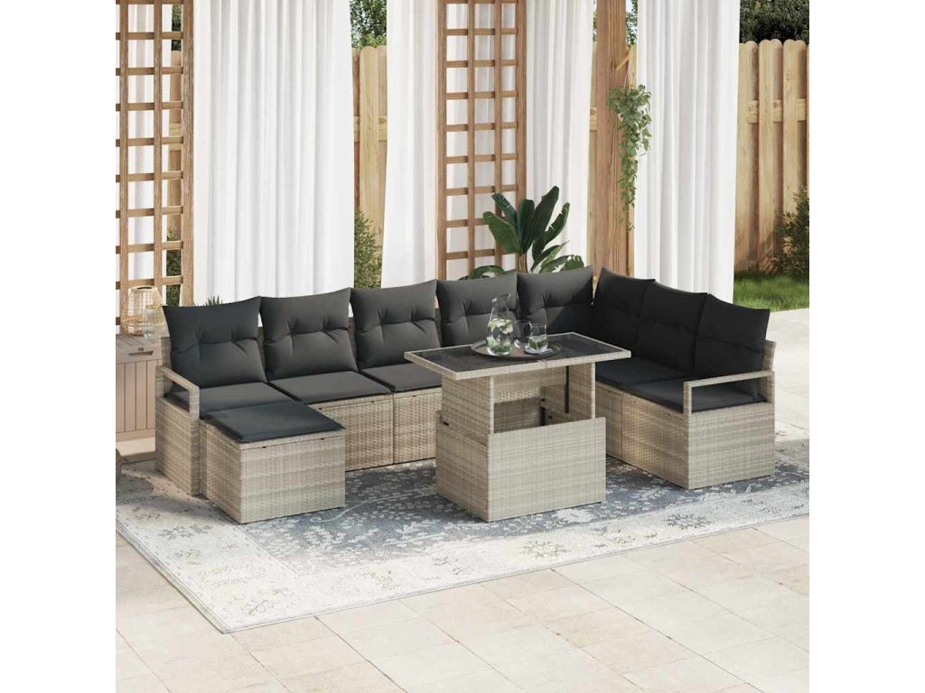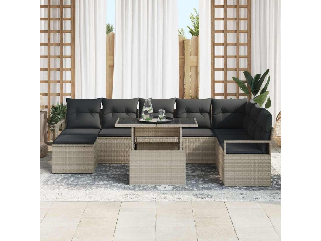 Súprava záhradných pohoviek s vankúšom 9 pcs Svetlosivá 3348878