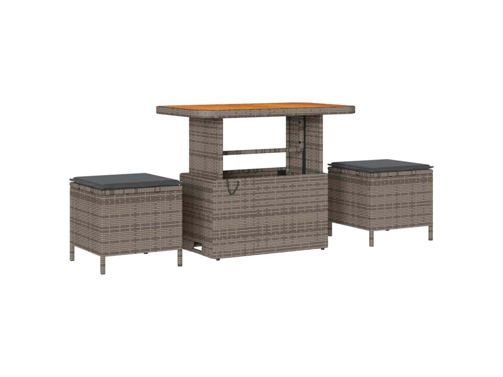 - Materiály: Tento nábytok je vyrobený z robustného poly ratanu a masívneho akáciového dreva, ktoré sú odolné voči poveternostným podmienkam. Zachovávajú si moderný vzhľad a minimalizujú nároky na údržbu.
