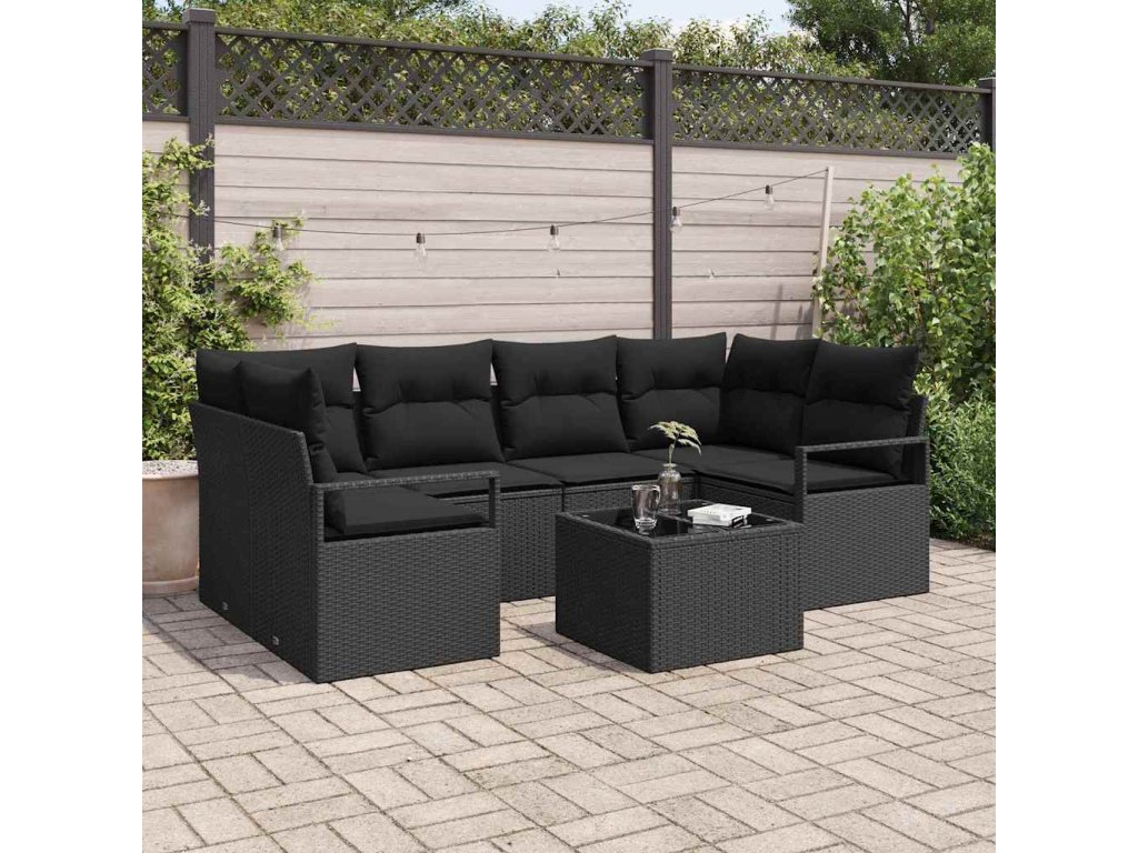Súprava záhradných pohoviek s vankúšom s úložiskom 7 pcs Čierna 3354952