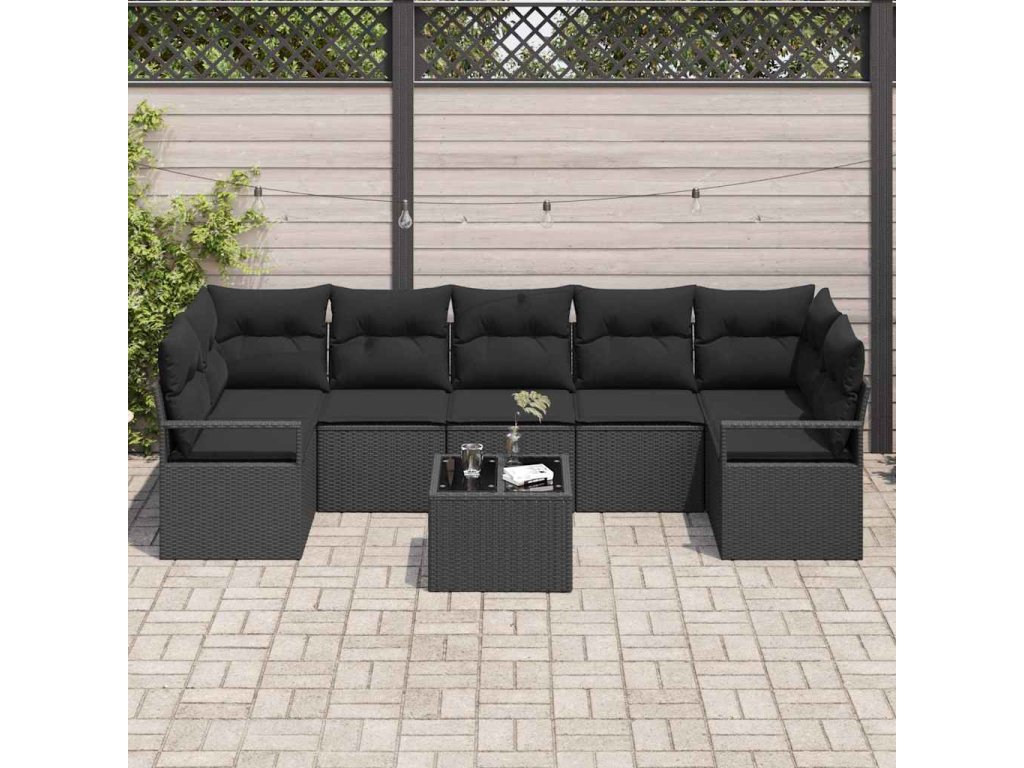Súprava záhradných pohoviek s vankúšom s úložiskom 8 pcs Čierna 3354972