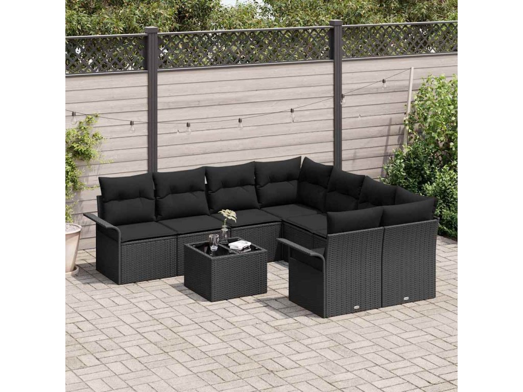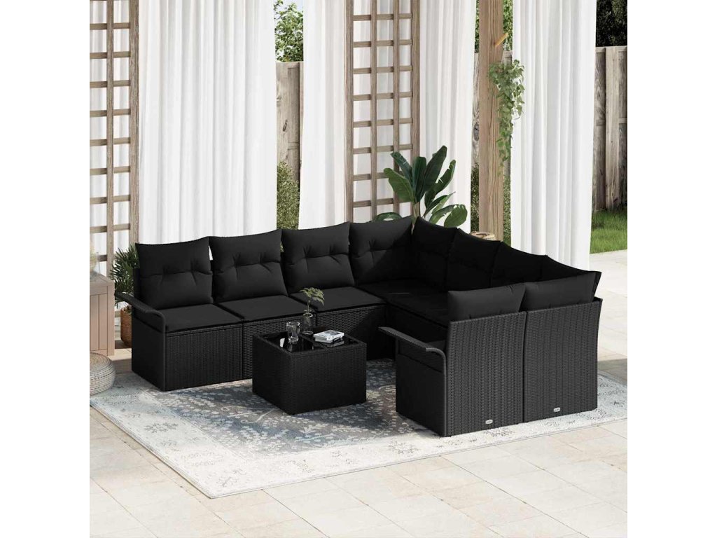 Súprava záhradných pohoviek s vankúšom s úložiskom 9 pcs Čierna 3353972