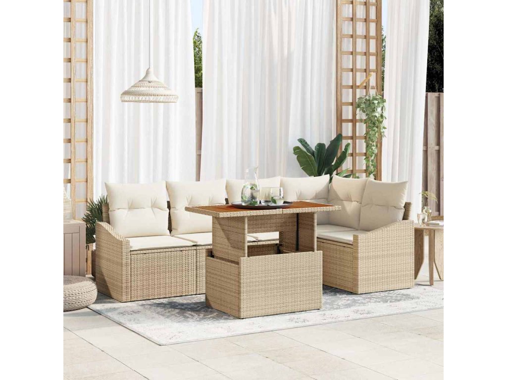 - Odporúčané použitie: Perfektná na slnečné popoludnia a jarné večery, tento jedálenský set je skvelý vonkajší nábytok pre záhrady, terasy alebo balkóny. Jej pevná konštrukcia odoláva každodennému používaniu a úložný priestor na príslušenstvo a vankúše drží všetko pekné a upratané. Skvelá pre zábavu alebo rodinné jedlá, premení akékoľvek vonkajšie miesto na živé centrum.