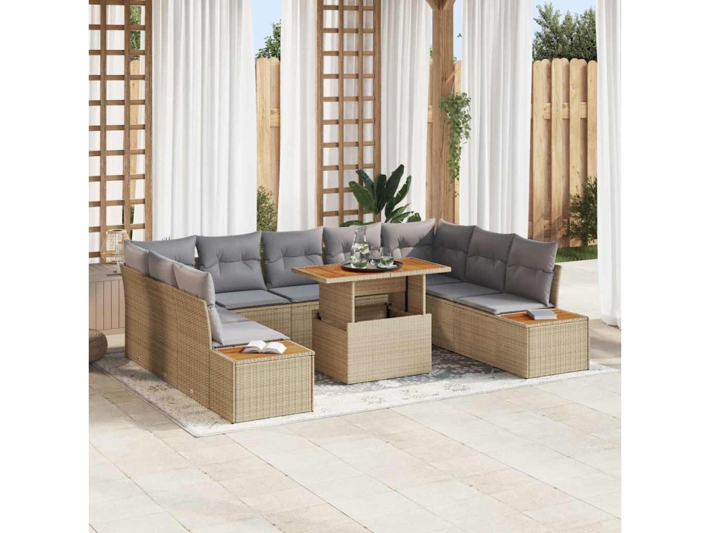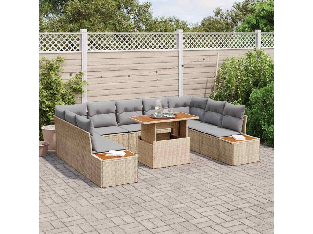 Záhradný jedálenský set s vankúšom 10 pcs Béžová a šedá 3350102