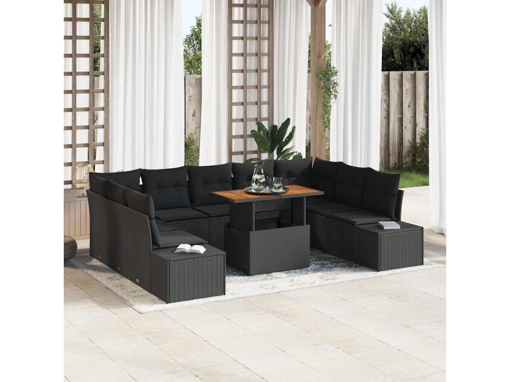 Záhradný jedálenský set s vankúšom 10 pcs Čierna a Hnedá 3350009