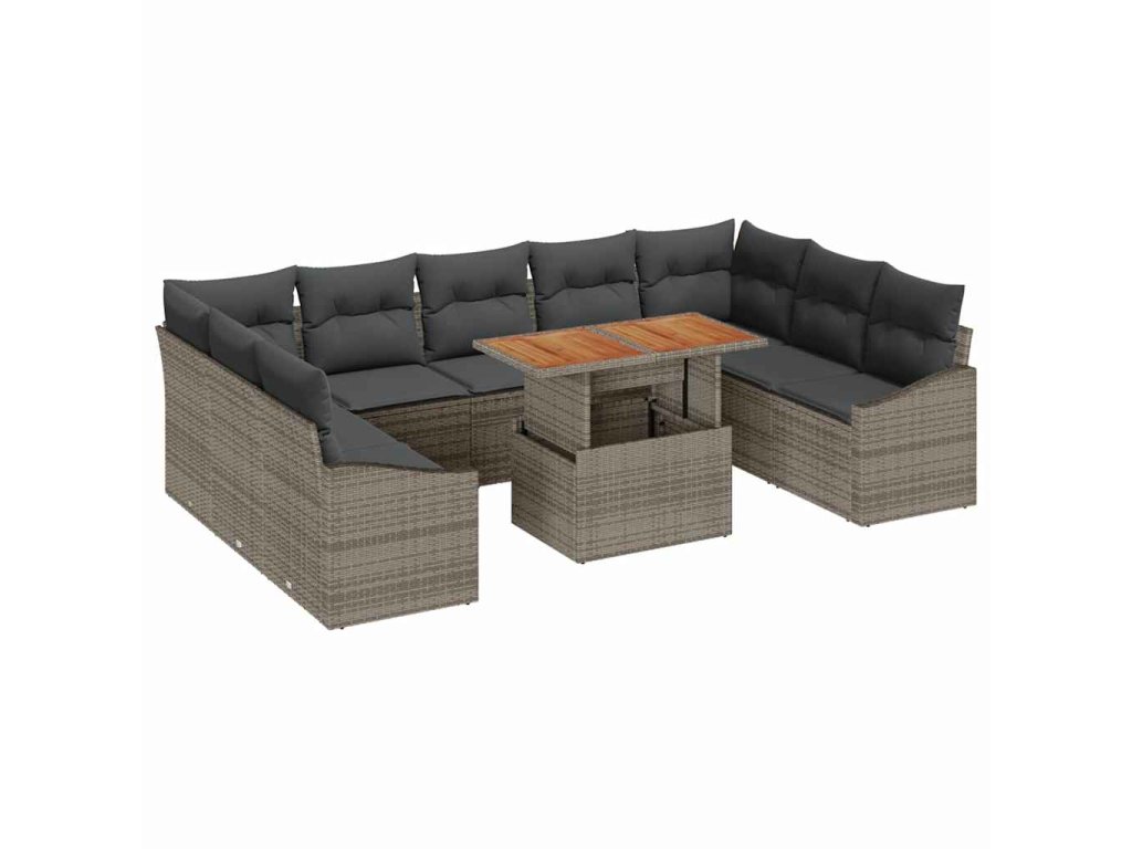 Záhradný jedálenský set s vankúšom 10 pcs Sivá a hnedá 3349880