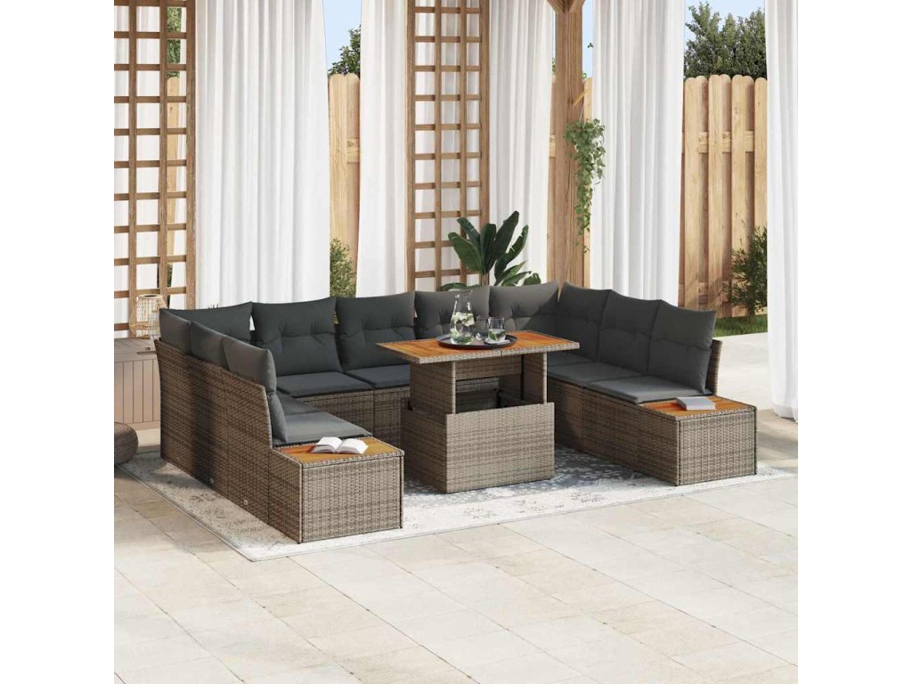 Záhradný jedálenský set s vankúšom 10 pcs Sivá a hnedá 3350101