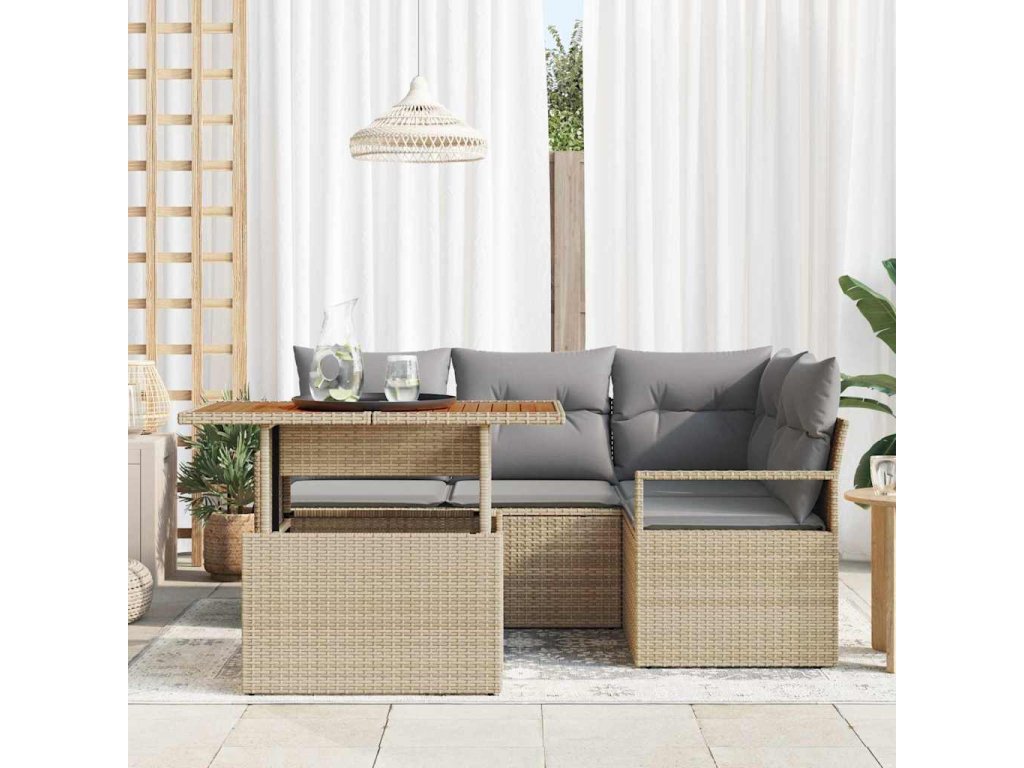 Záhradný jedálenský set s vankúšom 5 pcs Béžová a šedá 3349706