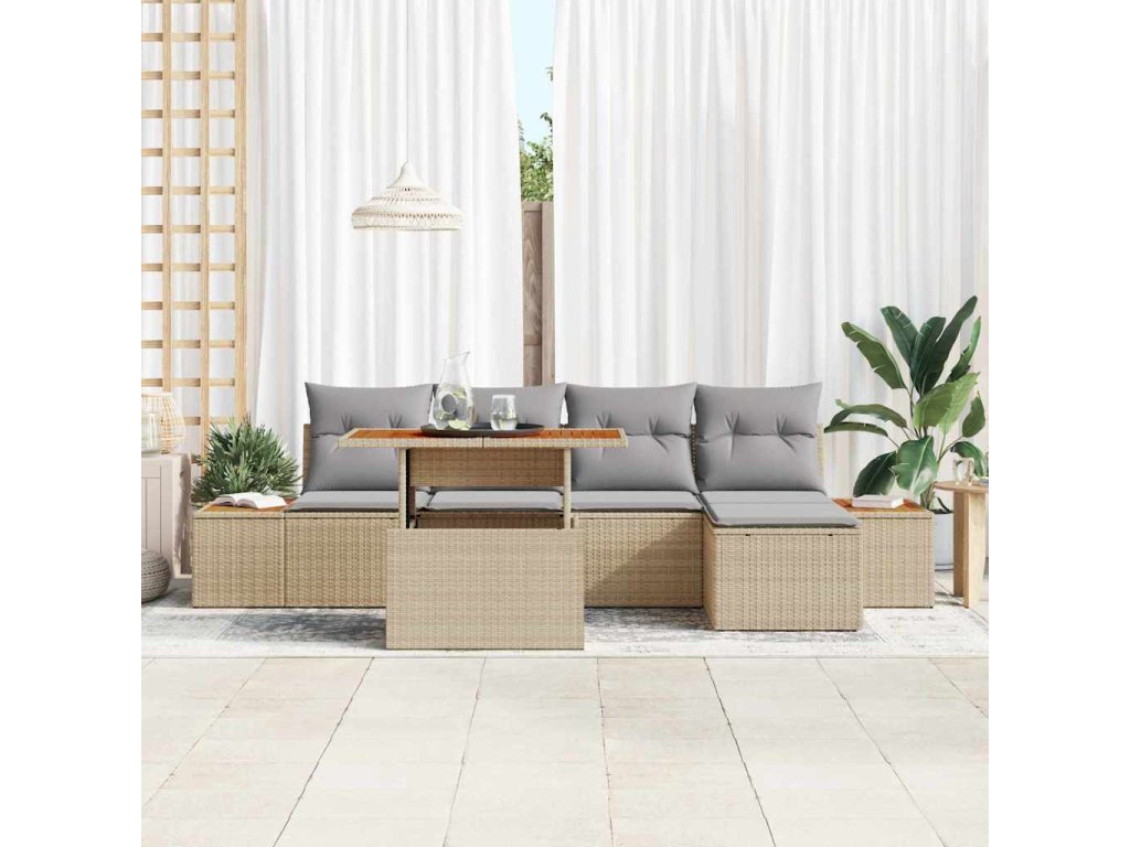 Záhradný jedálenský set s vankúšom 6 pcs Béžová a šedá 3350062