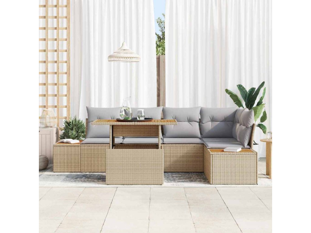 Záhradný jedálenský set s vankúšom 6 pcs Béžová a šedá 3350072