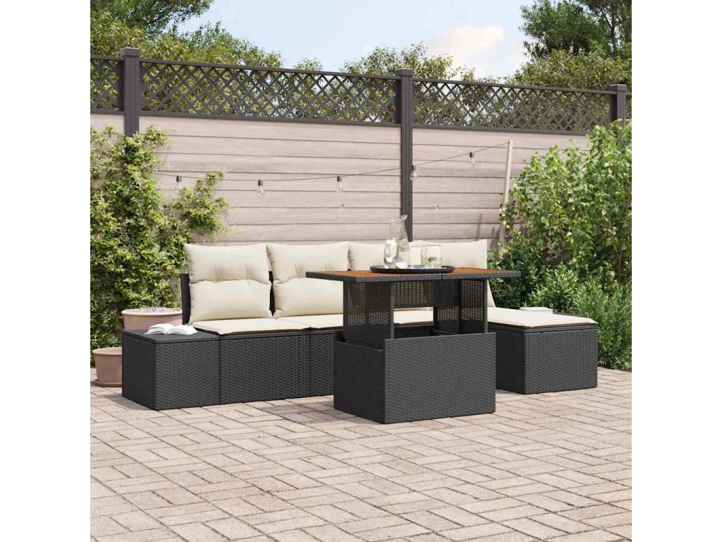 Záhradný jedálenský set s vankúšom 6 pcs Čierna a krémová 3349949