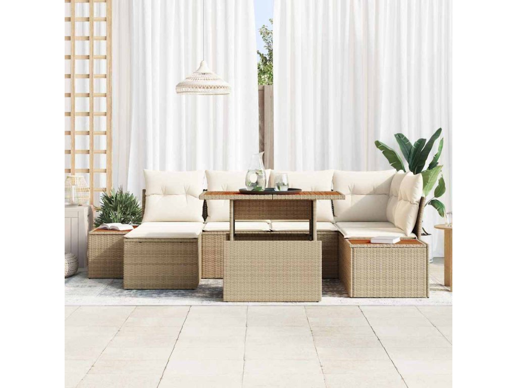 Záhradný jedálenský set s vankúšom 7 pcs Béžová a krémová 3350088