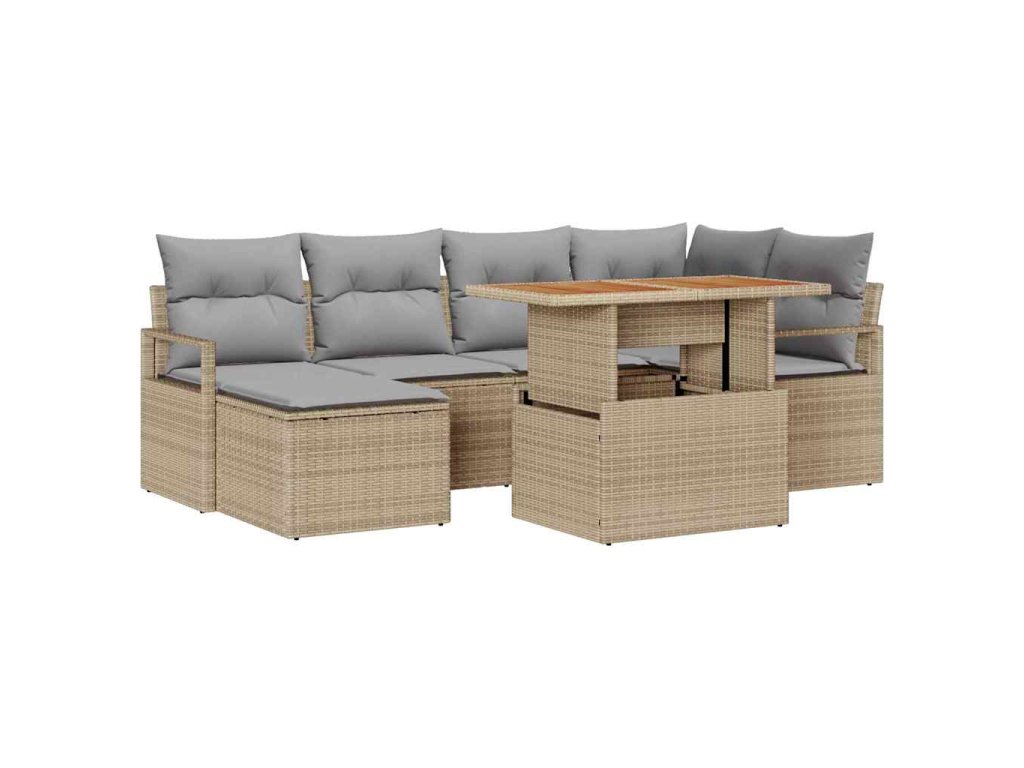 Záhradný jedálenský set s vankúšom 7 pcs Béžová a šedá 3349734