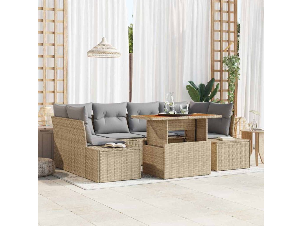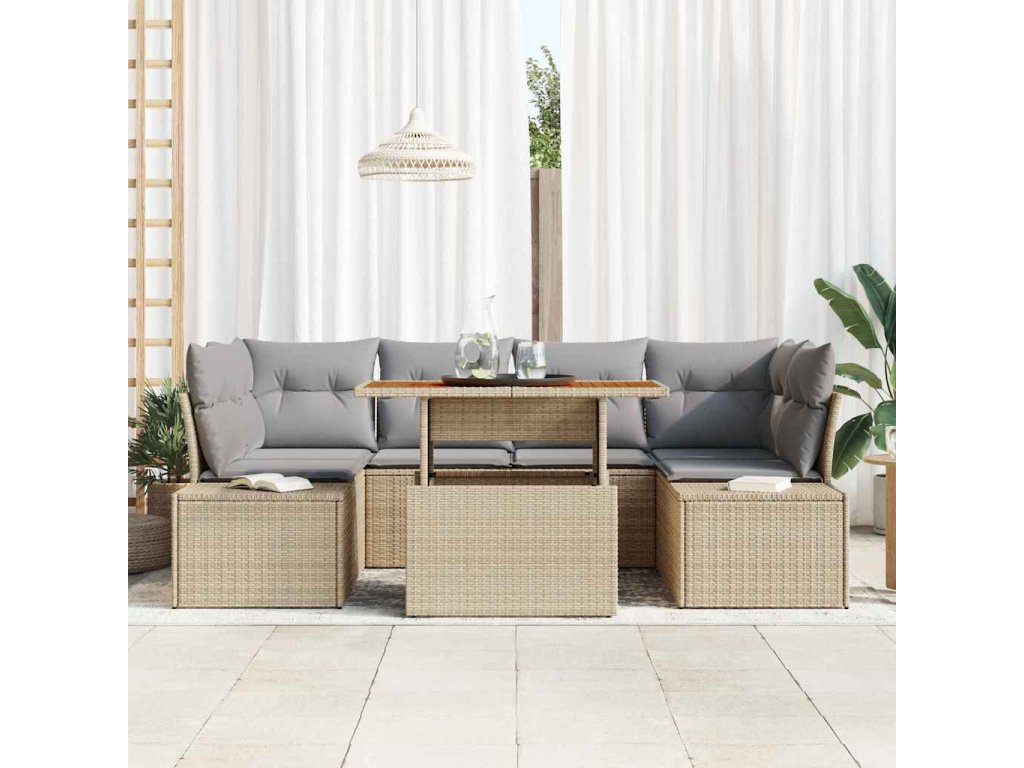 Záhradný jedálenský set s vankúšom 7 pcs Béžová a šedá 3349916