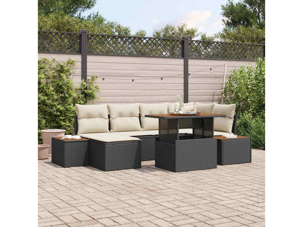Záhradný jedálenský set s vankúšom 7 pcs Čierna a béžová 3350084