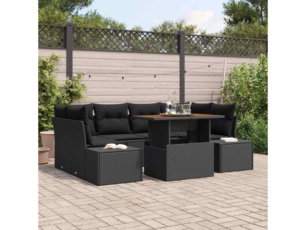 Záhradný jedálenský set s vankúšom 7 pcs Čierna a Hnedá 3349918